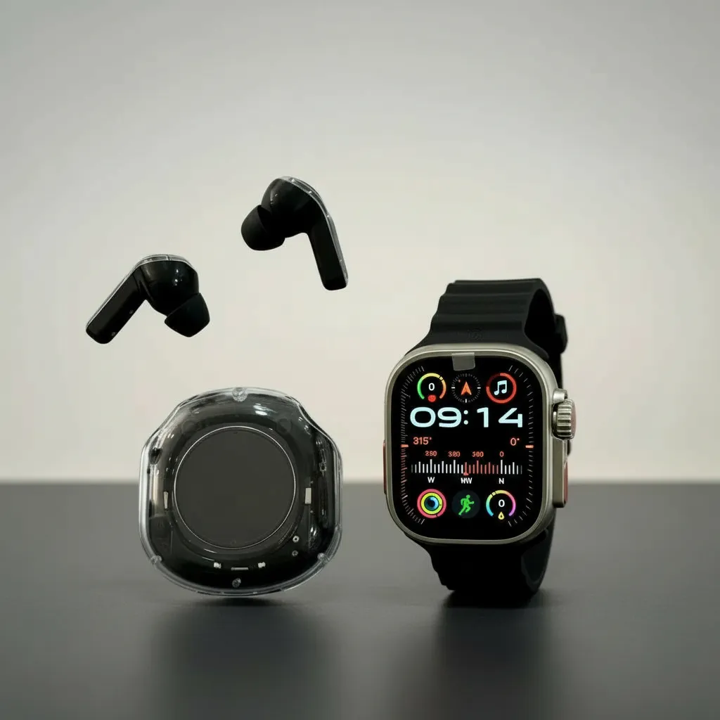 Set de Reloj Smartwatch. Incluye Auriculares tipo earpod y caja de carga con luces led . Incluye 7 correas para el reloj. Cargador magnetico. El Smartwatch es de ultima generación con bateria de larga duración, interfase touch rapida. Monitor deportivo, medidor de salud, Calendario, monitor de sueño. Recibe llamadas y mensajes con microfono incorporado